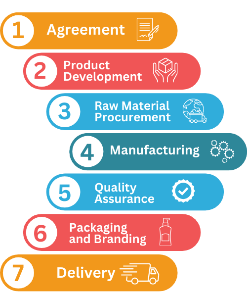 2. Product Development: a) The hiring company shares product formulations, specifications, or designs. b) In some cases, the manufacturer develops the product based on requirements.